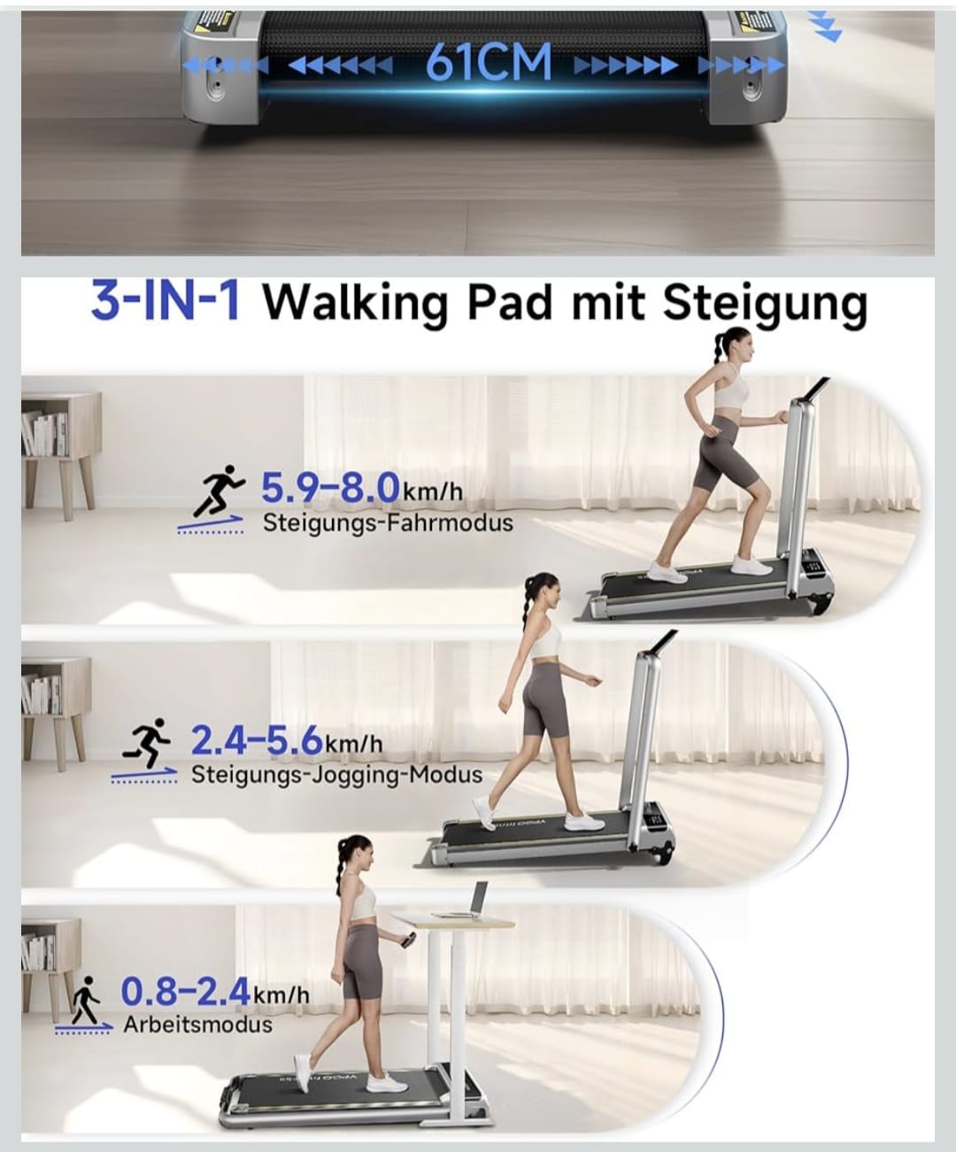 【2-u-1 Sklopiva traka za trčanje】 YPOO sklopiva traka za trčanje nudi brzinu od 0,8-8 km/h (0,5-5 mph). Kada se ručka tihe trake za trčanje za dom sklopi, može se koristiti kao traka za trčanje. Možete aktivirati način rada za slobodno vrijeme od 0,8 do 6 km/h. Podignite ručke nagnute trake za trčanje za intenzivniji trening pri brzinama trčanja do 5 mph. Idealno za održavanje aktivnosti na poslu ili kod kuće.
