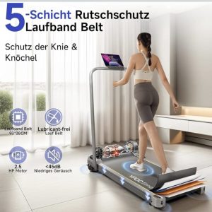 【Široka i neklizajuća traka za trčanje】Traka za trčanje s trakom za trčanje ima 5-slojnu neklizajuću podlogu (99,3 cm x 38,4 cm) i pruža izvrsnu amortizaciju za zaštitu koljena i zglobova. Zahvaljujući naprednoj strukturi okvira i sustavu apsorpcije udaraca, traka za trčanje s trakom za trčanje i ručkom jednostavna je za održavanje i pohranu.