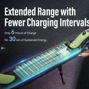 • Snažan motor i veliki domet: Opremljen 400 W bezčetkastim motorom i baterijom od 36 V 7,8 Ah, omogućuje vožnju do 30 km s maksimalnom brzinom do 20 km/h.