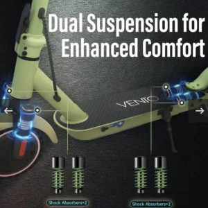 • Udobna vožnja: 8,5” kotači, prednji i stražnji amortizeri te proširena platforma osiguravaju stabilnost i udobnost na svim podlogama.